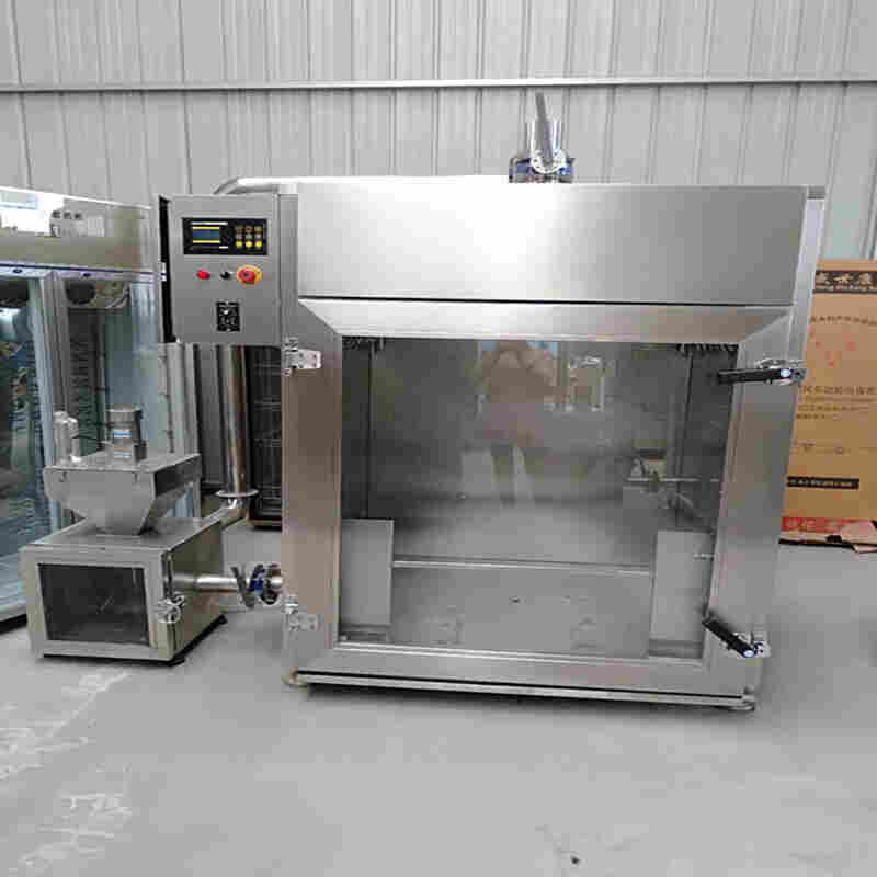 红肠烟熏炉 哈尔滨红肠烟熏设备全自动烟熏炉,红肠的烟熏烘干其实我们注重的就是咱们红肠表面的褶皱数量,这个不仅仅与工艺有关,还与咱们烟熏炉的热量是否均匀有关系。要看烟熏的效果如何,上色是否均匀,主要就是看烟熏炉的内部循环结构,如果内循环还,上色就会均匀,烟熏的效果就会很好。